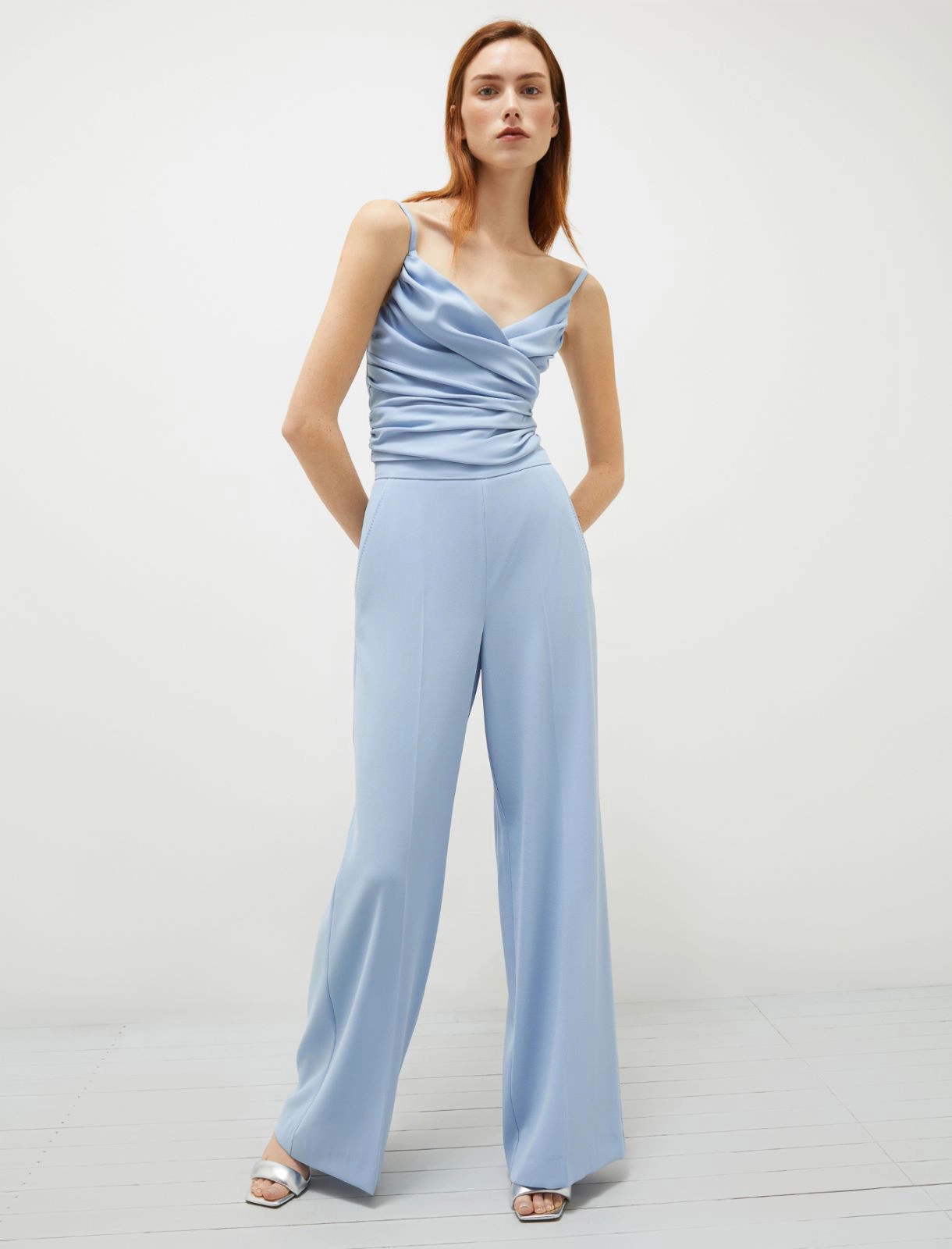 Il nuovo must have da giorno è il pantalone palazzo in crêpe. Fluido, sofisticato, allunga la silhouette senza segnare. Abbinalo a un top drappeggiato e a sandali on tone per un city look raffinato.