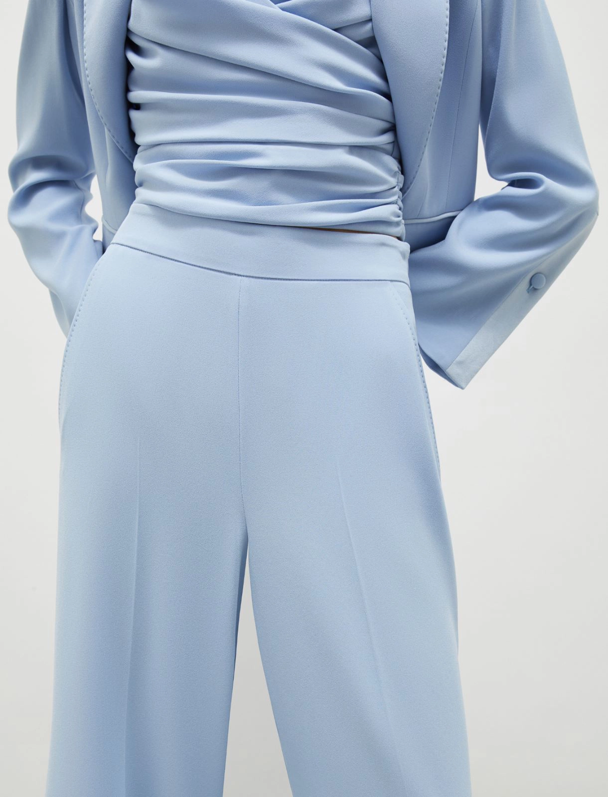 Il nuovo must have da giorno è il pantalone palazzo in crêpe. Fluido, sofisticato, allunga la silhouette senza segnare.