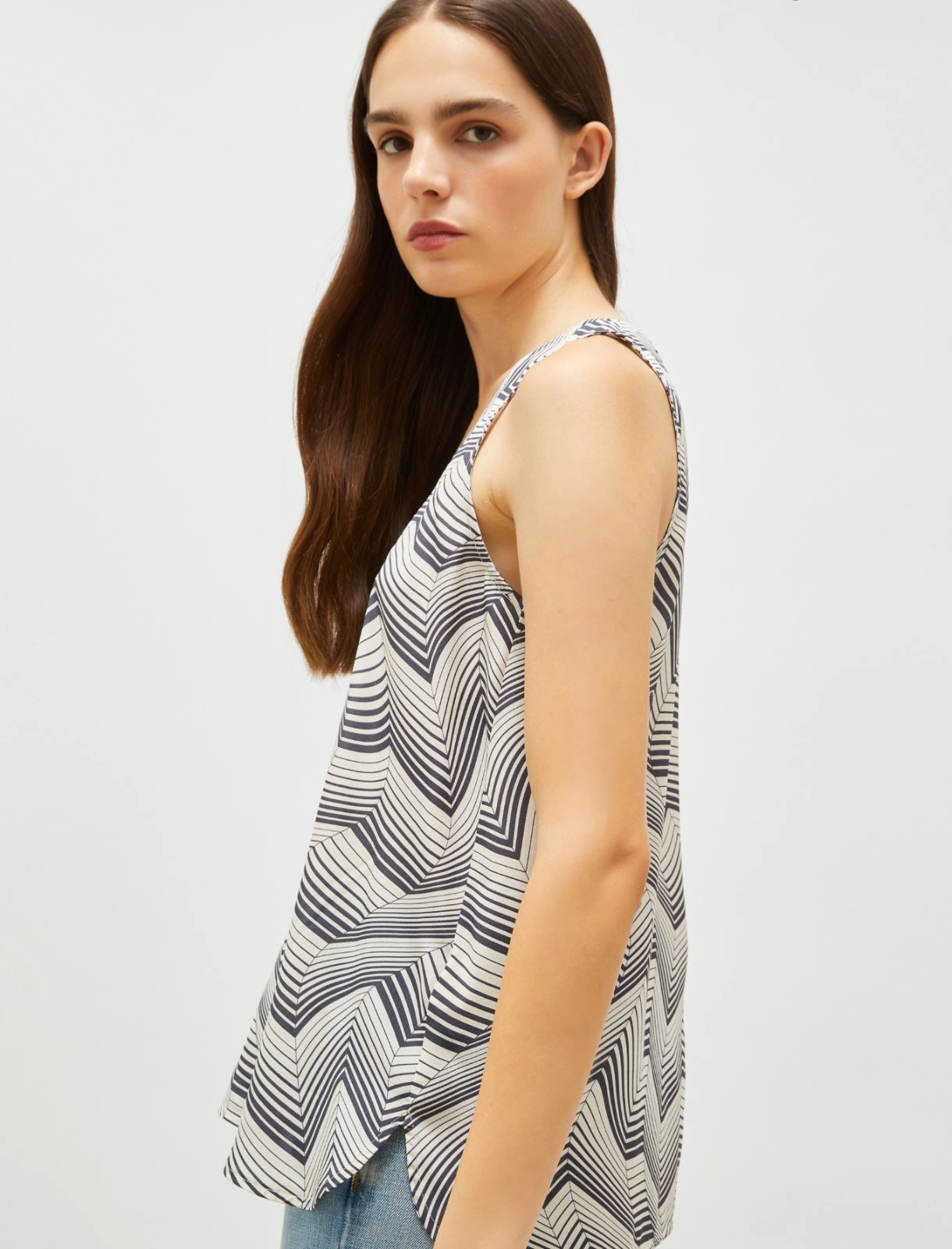 La stampa optical aggiunge una nota raffinata a questa canotta in pura seta.